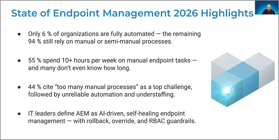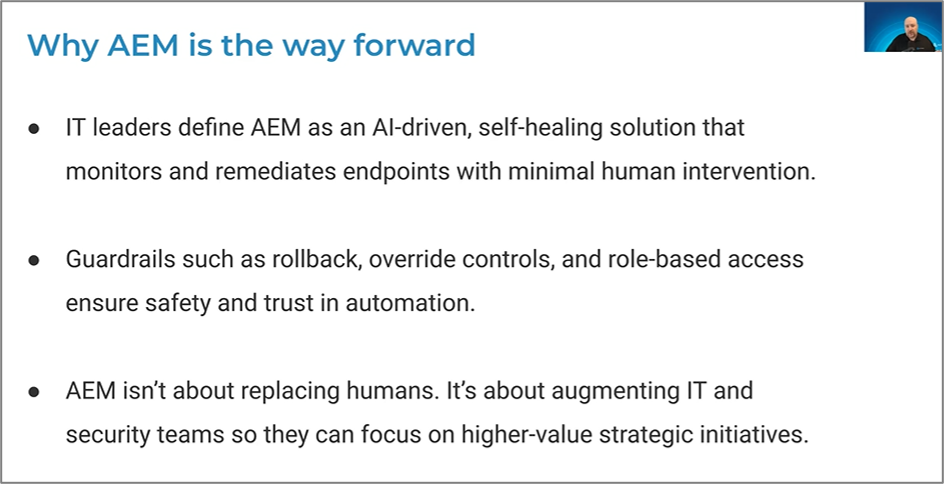 AEM(自律型エンドポイント管理)は、人間を置き換える技術ではなく、「人間をより価値のある仕事に集中させるための技術」として語られました。